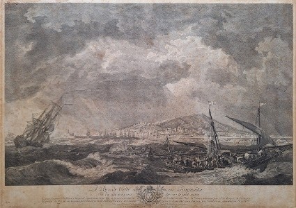 Großformatiger Kupferstich (Radierung) nach dem Ölbild von Vernet (1757),