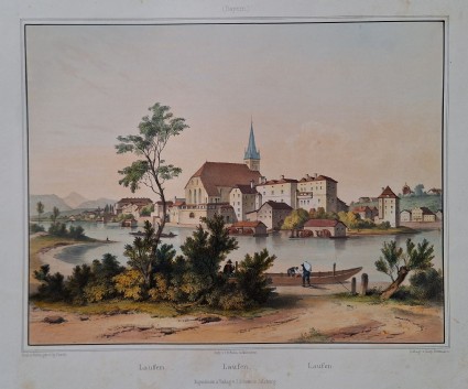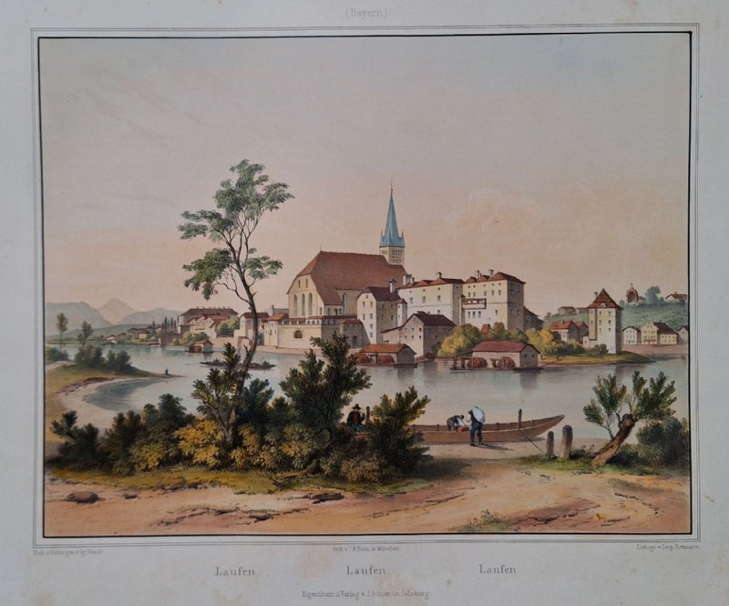 Laufen (an der Salzach). Kolorierte Orig. Lithographie v. L. Rottmann nach G. Pezolt, 1849.
