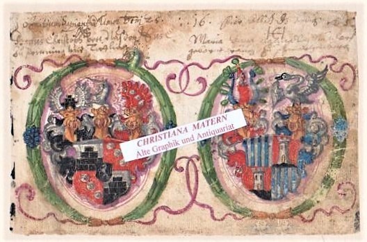 9 x 14 cm.Best.Nr. 5579. Deckfarbenmalerei auf Büttenpapier der Wappen von Hans Chistoph Nussdorfer u. seiner Gemahlin Maria Anna Gräfin zu