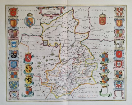 CAMBRIDGESHIRE / ENGLAND / MAP 1645. Cantabrigiensis Comitatus. Cambridgeshire. Fine coloured old map. Orig. kolorierte alte Kupferstichkarte.€ 480,00