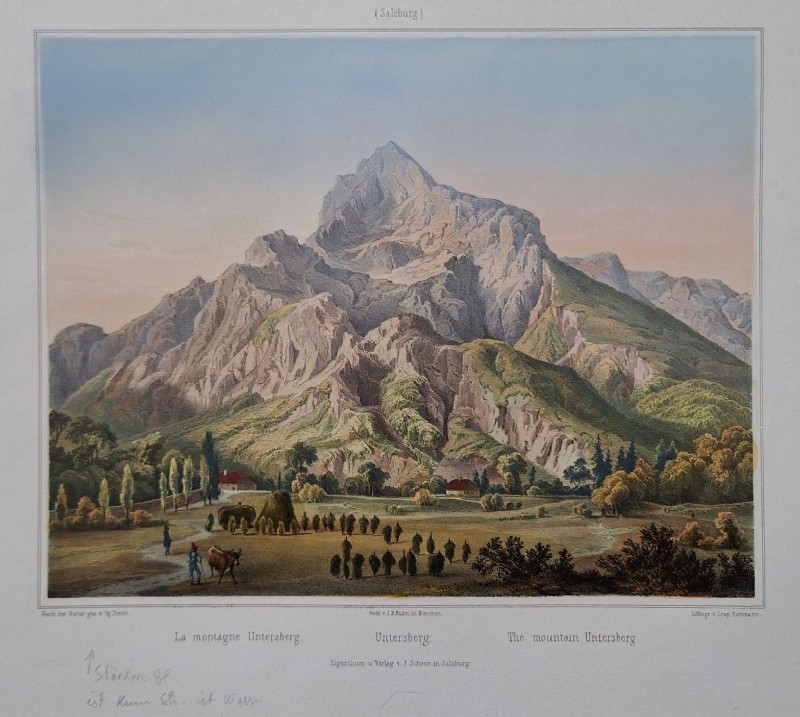 Untersberg. Kolorierte Orig.Lithographie von Leop. Rottmann nach Georg Pezolt, um 1847.