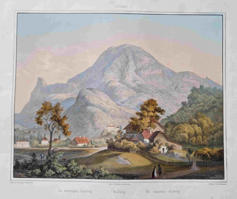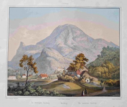 Gaisberg (mit Gnigl). Kolorierte Lithographie von Leopold Rottmann nach Georg Pezolt, um 1852.