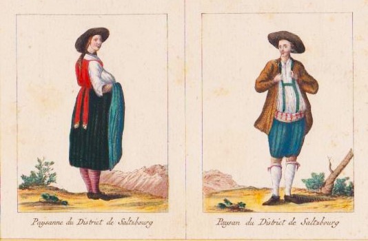 Frühe, seltene Salzburger Trachtenbilder aus den Salzburger Gauen.