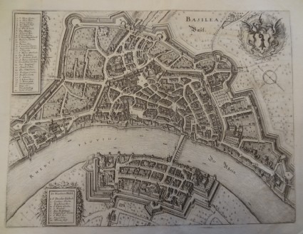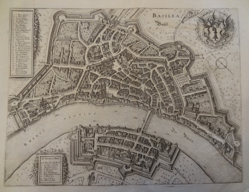 Basilea - Basel. Orig. Kupferstich v. Matthäus Merian aus "Gottfried, Archontologia Cosmica", 1638.