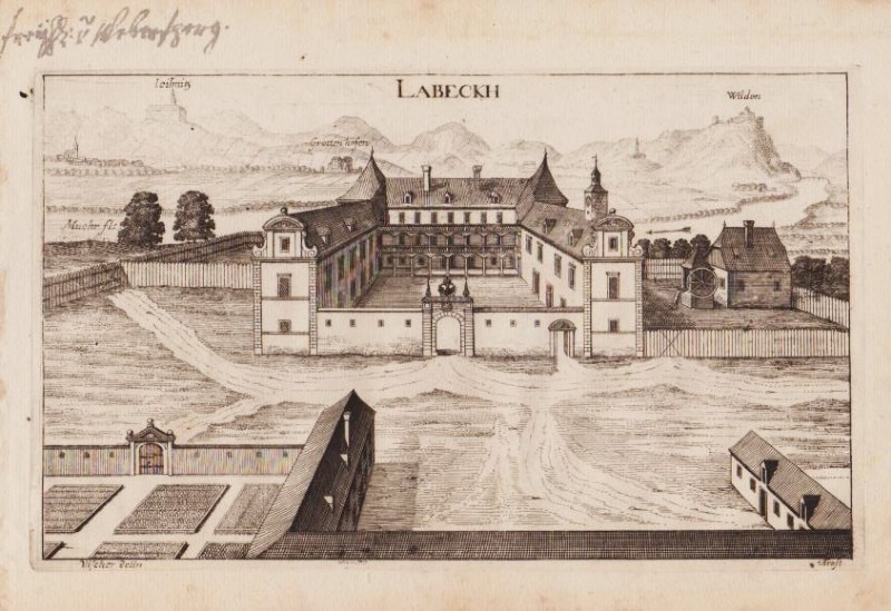 Labeckh (Schloss Laubegg bei Ragnitz, Steiermark). Orig. Kupferstich von A. Trost nach Matthäus Vischer, um 1681.